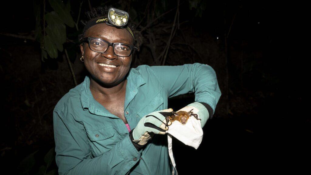 À bien des égards, les chauves-souris s’aventurent dans les exploitations agricoles et se nourrissent d’une grande partie des insectes qui s’y trouvent. Des données et des études démontrent que les chauves-souris représentent un avantage considérable : là, je parle de millions de dollars par an d’économies réalisées sur l’utilisation des pesticides. C’est tout simplement incroyable parce que protéger les chauves-souris, c’est protéger vos moyens de subsistance et votre sécurité alimentaire. Et nous parlons de l’Afrique… Pour les gens dans la forêt, les personnes qui vivent à la lisière de la forêt, la nourriture passe presque directement de la ferme à la table. Donc gérer le problème des parasites à la ferme est crucial pour réduire les menaces sur la sécurité alimentaire. Quand vous protégez l’habitat de la chauve-souris, vous protégez la capacité de la chauve-souris à aller dans les fermes de cacao par exemple, et vous aurez donc du chocolat à table ! Par ailleurs, notre campagne contre les incendies a permis de préserver les récoltes et les moyens de subsistance d’environ 27 000 personnes dans les 16 communautés voisines.